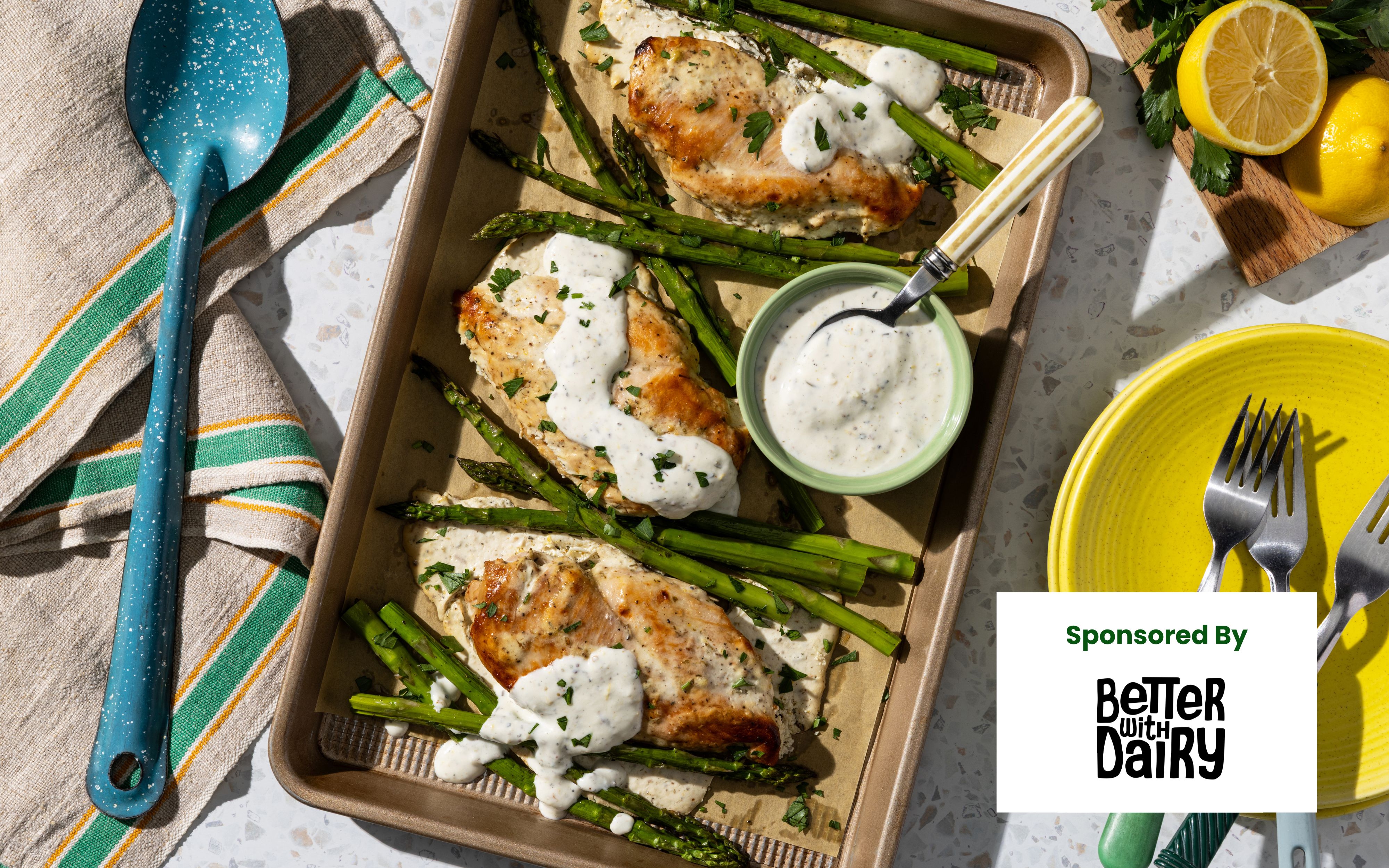Lemon-Herb Yogurt-Marinated Chicken and Asparagus Sheet Pan Dinner (~50min)